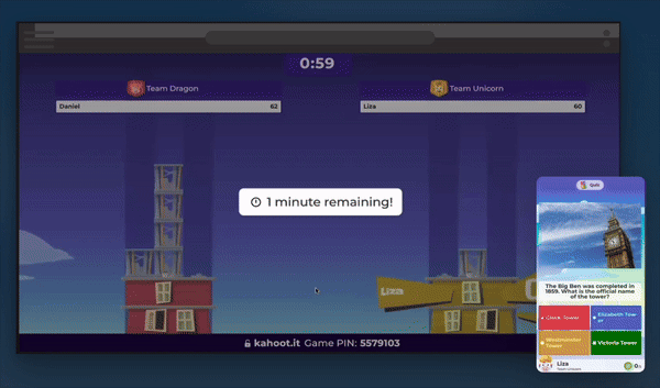 โหมดเกม Tallest Tower ใน Kahoot! เป็นประสบการณ์การเรียนรู้ที่สนุกและมีชีวิตชีวา โดยผู้เล่นจะร่วมมือกันเป็นทีมเพื่อสร้างหอคอยให้สูงที่สุด ผ่านการตอบคำถามอย่างถูกต้อง