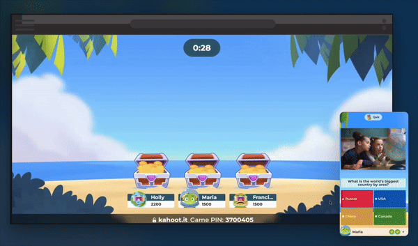 โหมดเกม Treasure Trove ใน Kahoot! มอบประสบการณ์การเรียนรู้แบบโต้ตอบ พร้อมช่วงพักสมองสั้น ๆ ระหว่างคำถามเพื่อช่วยให้ผู้เล่นมีส่วนร่วมตลอดเกม ผู้เล่นจะตอบคำถามเพื่อสะสมสมบัติ และต้องแตะเก็บให้รวดเร็วขณะที่สมบัติลอยผ่านไป