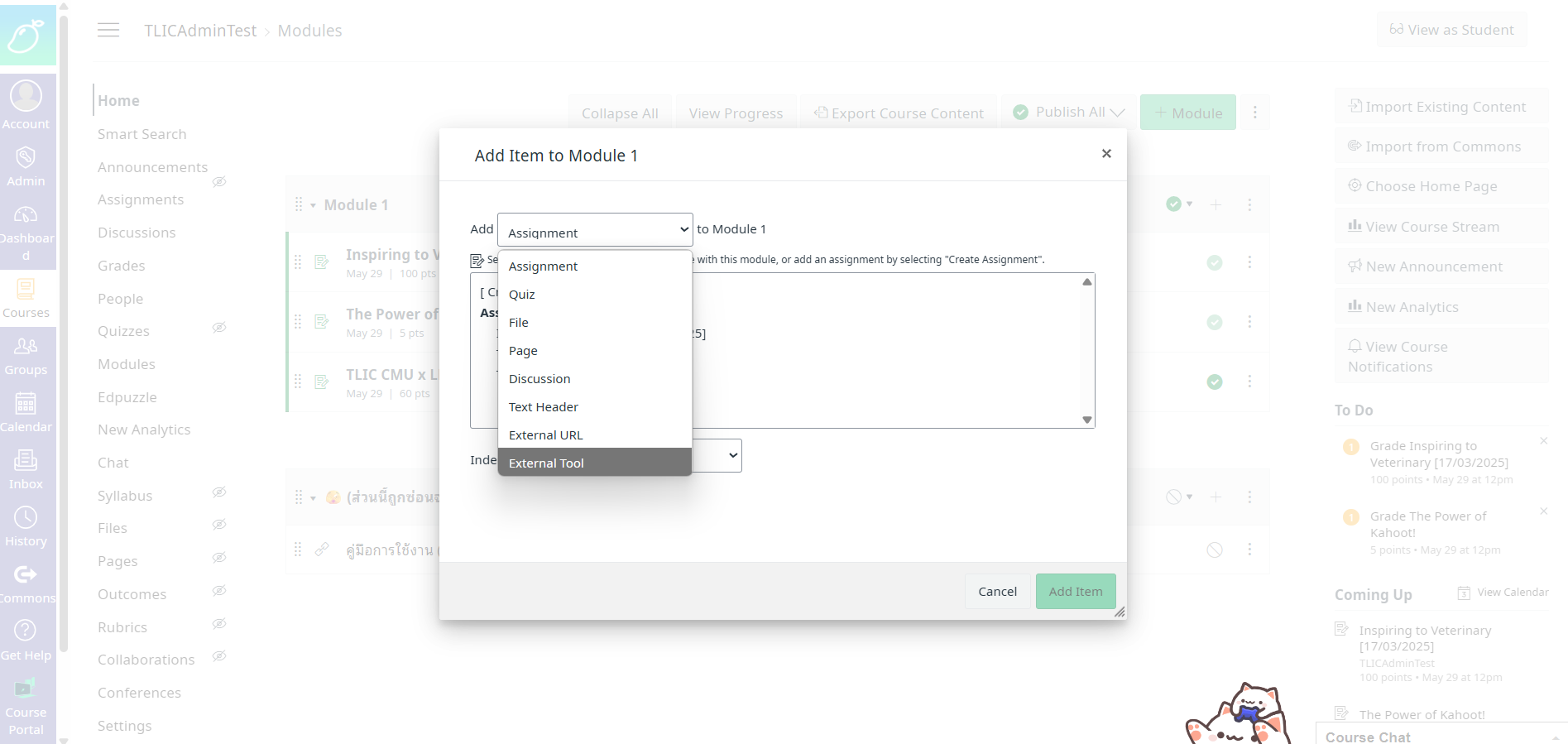 ## 3. เลือก Add item ที่ชื่อว่า External Tool