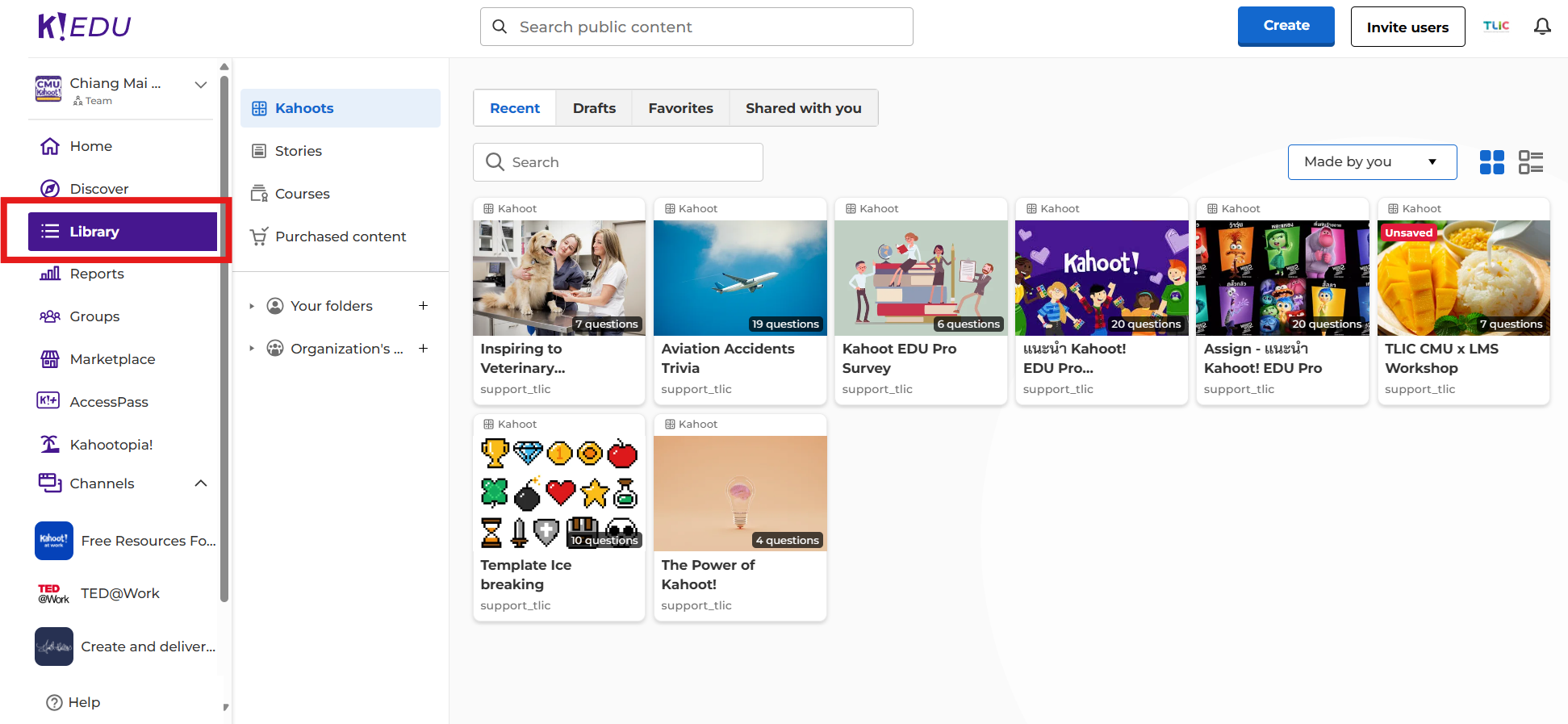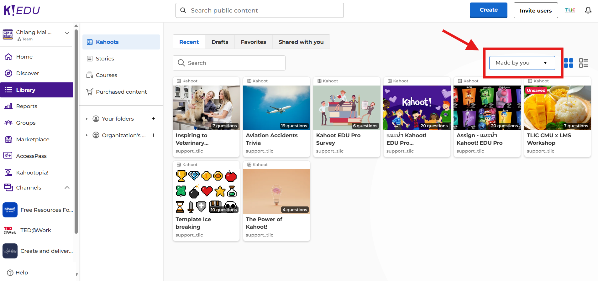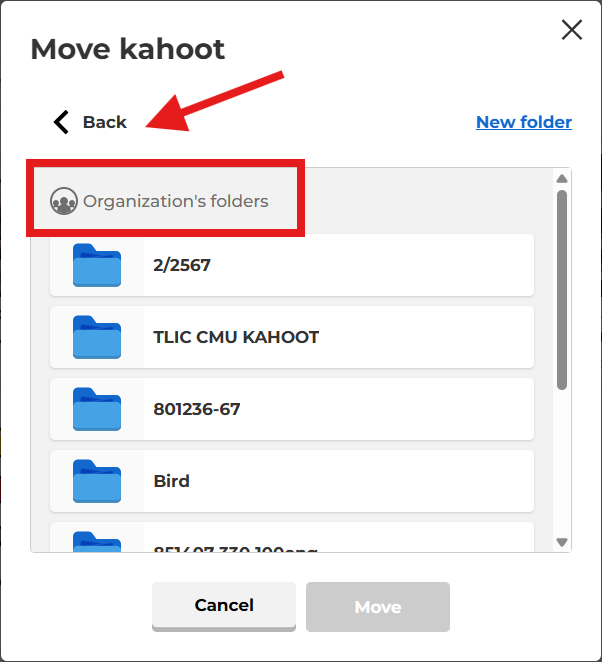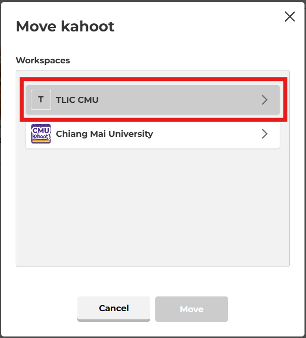 ### 4. เลือก Kahoot ที่ต้องการย้าย