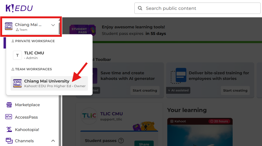 3. **เมื่อ Kahoot ของอาจารย์อยู่ใน "EDU Pro ส่วนตัวของท่าน" แต่อาจารย์ต้องการ...**