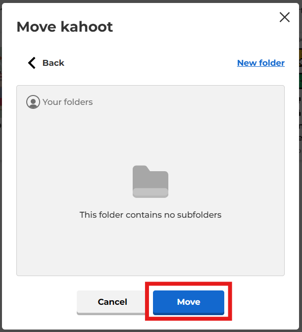 * ใช้ฟีเจอร์ขั้นสูง หรือต้องการพื้นที่จัดเก็บที่เป็นระบบมากขึ้นในบัญชี Pro ส่วนตัว: อาจารย์สามารถย้าย Kahoot นั้นไปยัง "EDU Pro ส่วนตัวของท่าน" (Your Folders ใน EDU Pro Workspace) ได้เลย