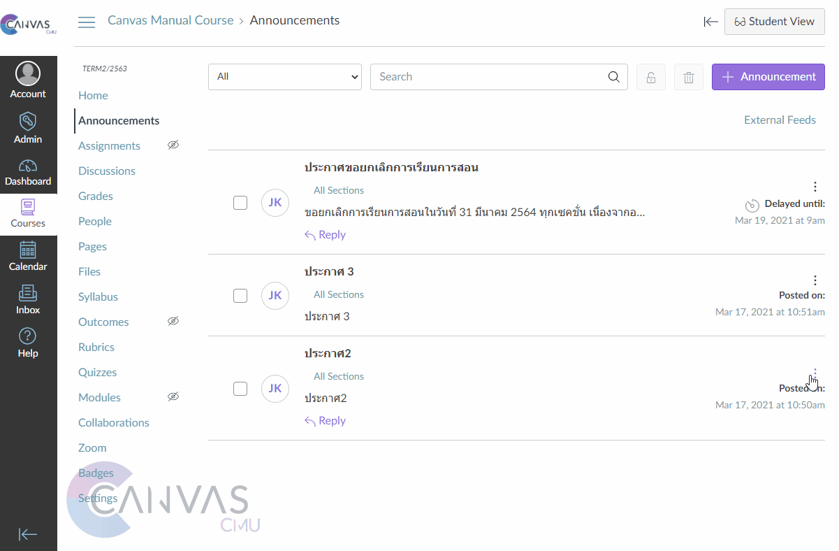 Communicate with students through announcements using the announcement.
