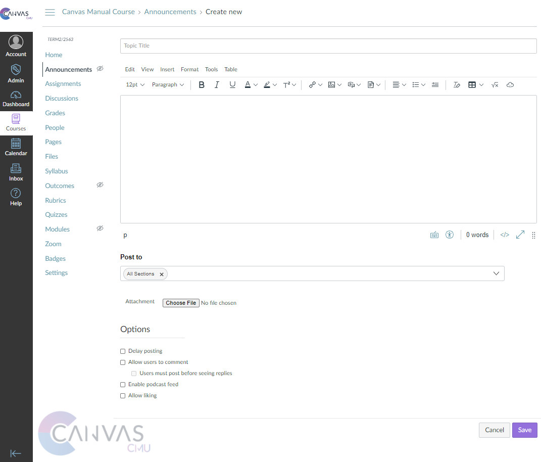Post to: select the course you want to notify about the announcement. You can select the course you want.