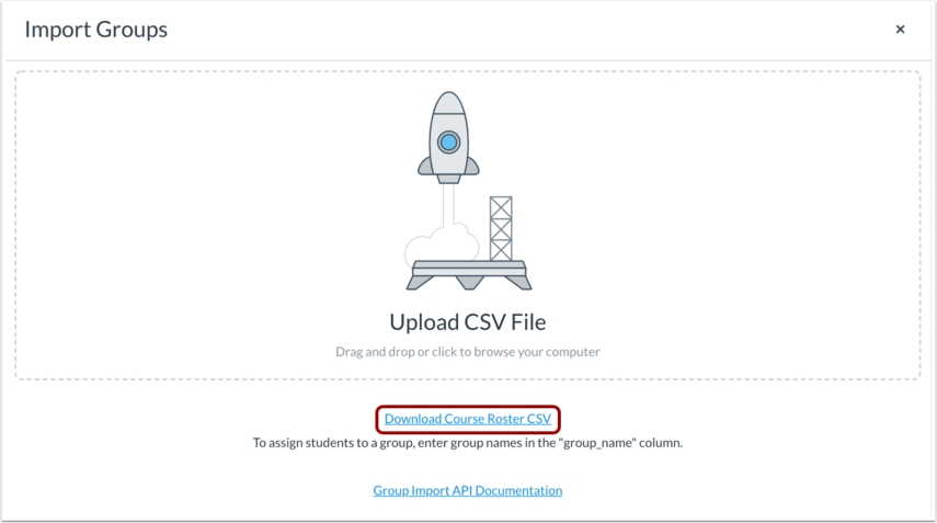 The import file window will appear. You can download the template for import by selecting Download Course Roster CSV.