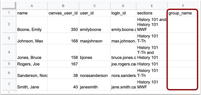 After importing the file, you will have the student information within the course. You can enter the Student Group name in the group_name column directly. Do not modify other data within the file. Once you have entered the group successfully, click Save.