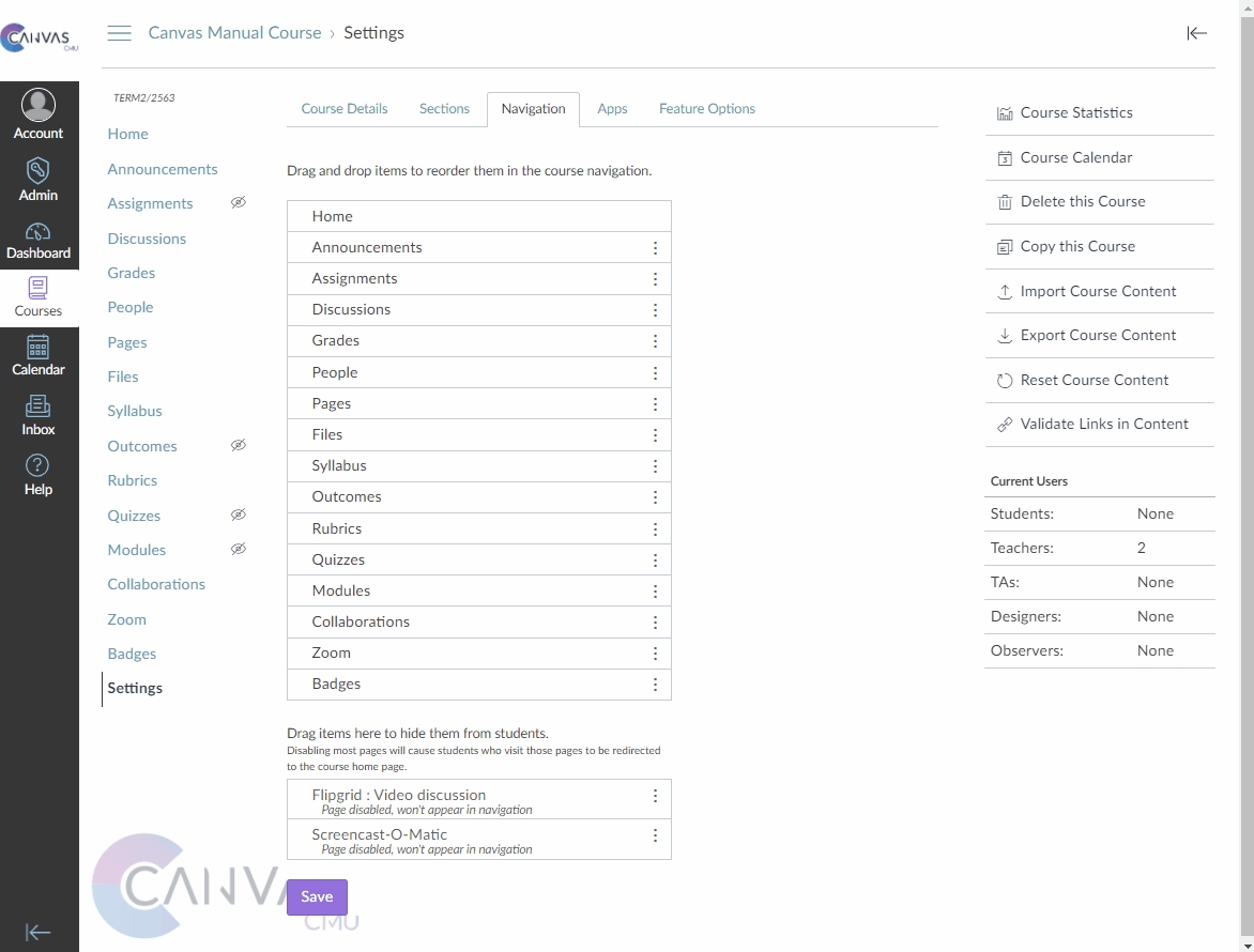 Arrange the different sections within the course to maintain organization. Highlight important sections or those you want participants to see first and hide or disable sections that are not needed.