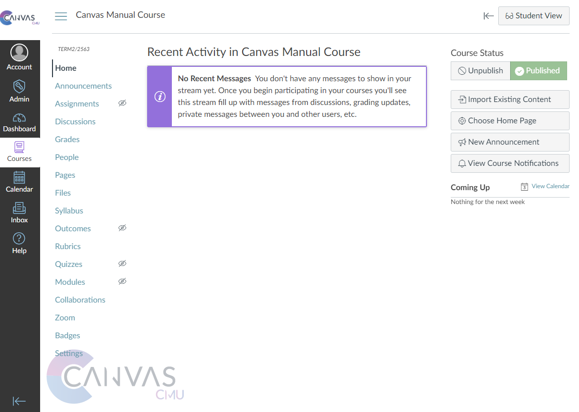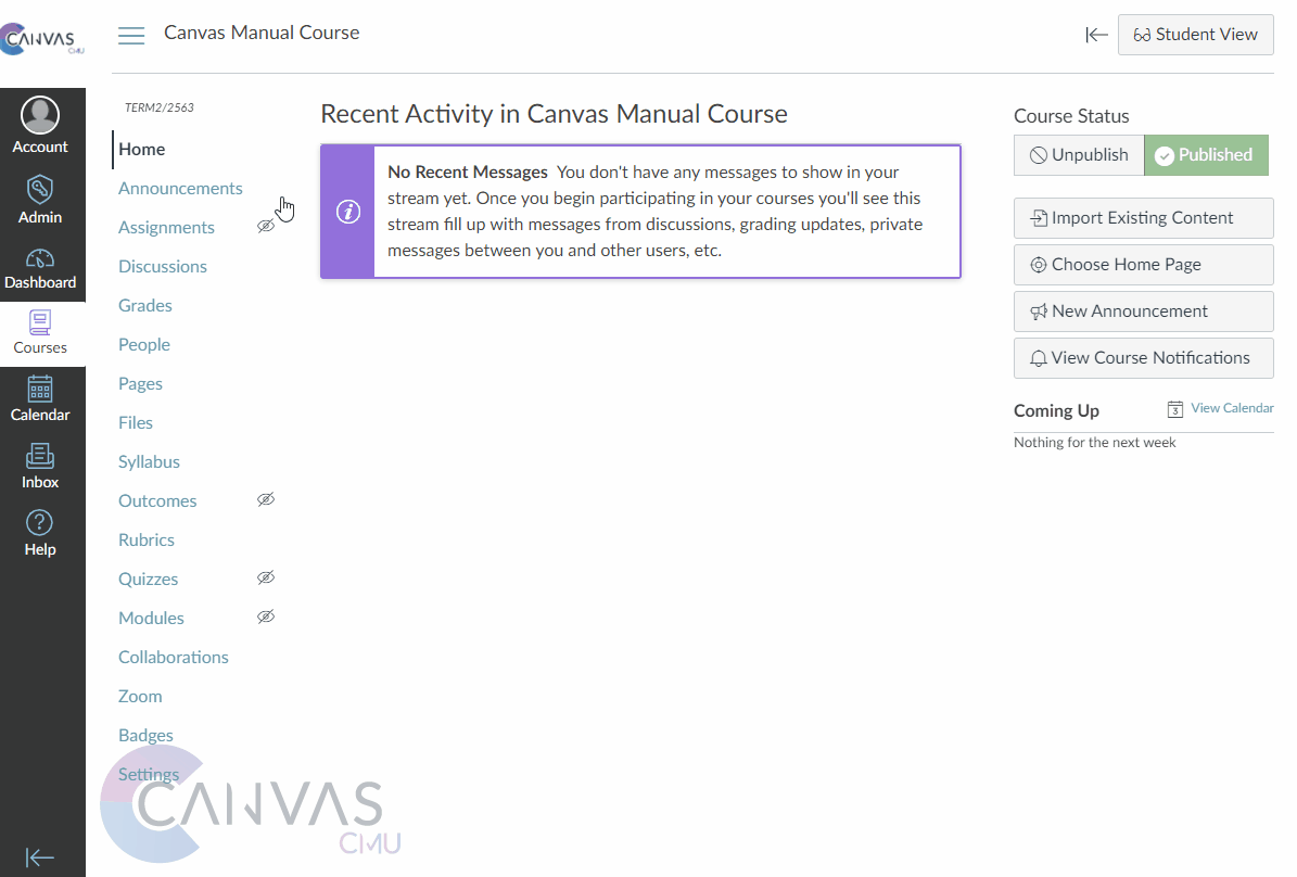 You can choose the desired homepage for your course. It can display all activities in the course, a selected page, different course topics, all assignments, or the course syllabus.