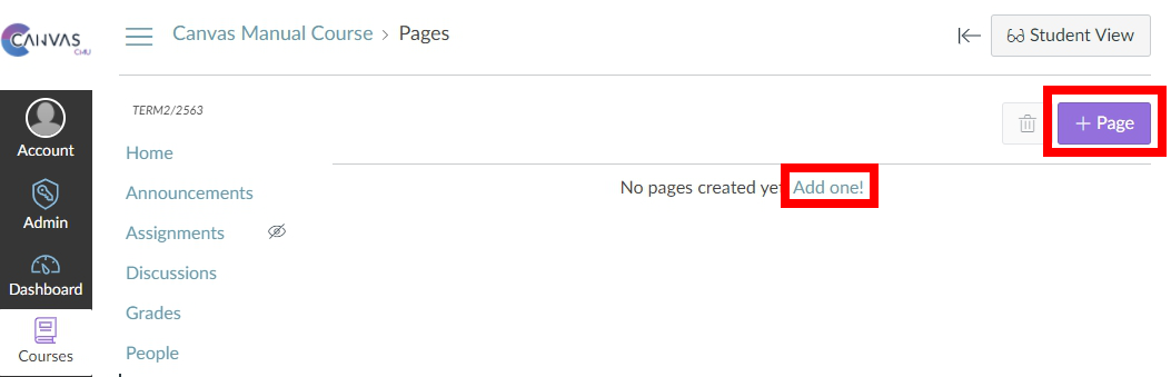 1. Click '+ Page 'or 'Add one!' to create a new page