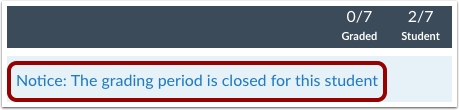 In cases where a course has multiple grading periods, if an assignment's grading period has ended, a notification will appear at the top of SpeedGrader, and the assignment cannot be edited or scored again.