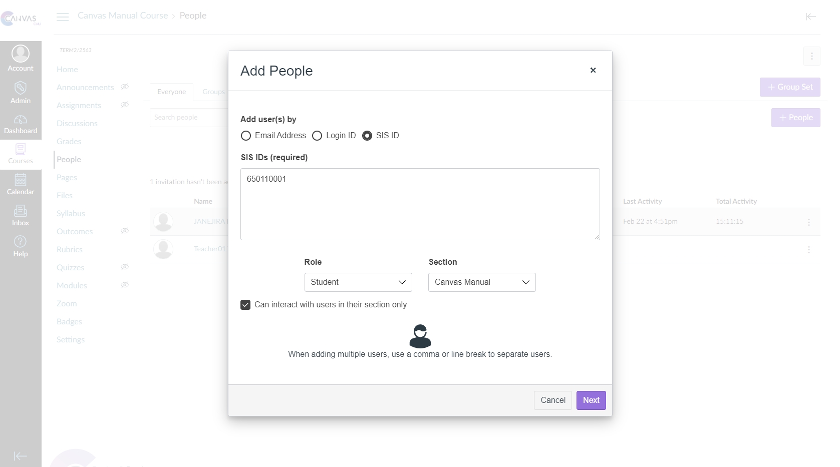 - Click “Add Users” to confirm adding user accounts to the course.