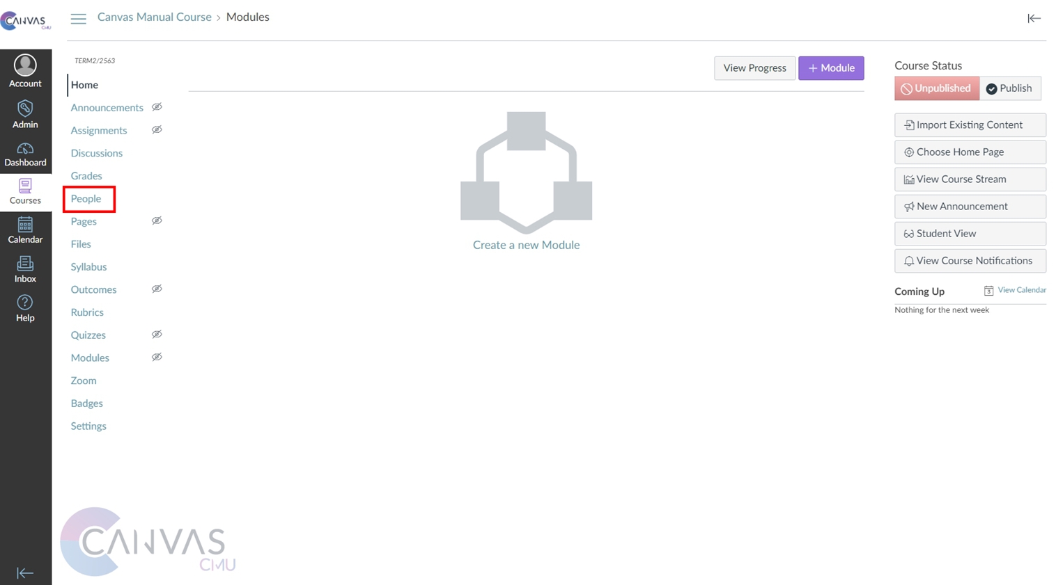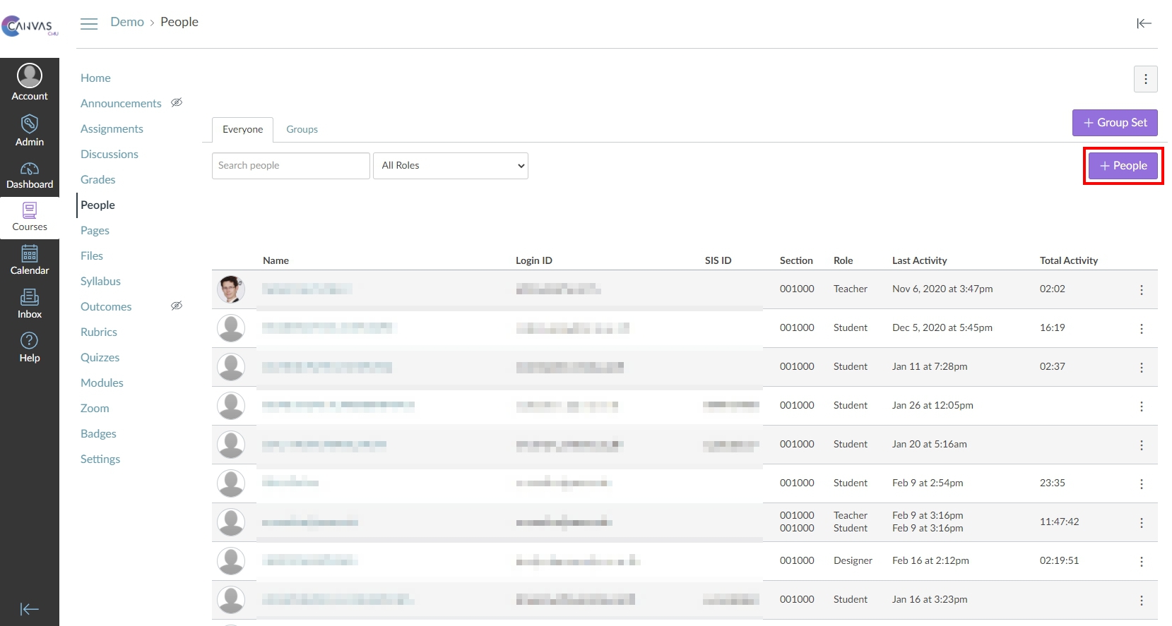 1. Use the 'People' menu to add participants to the course.
