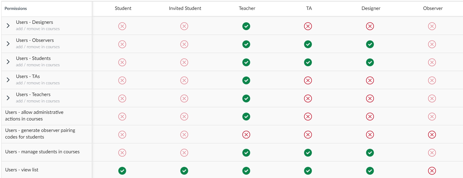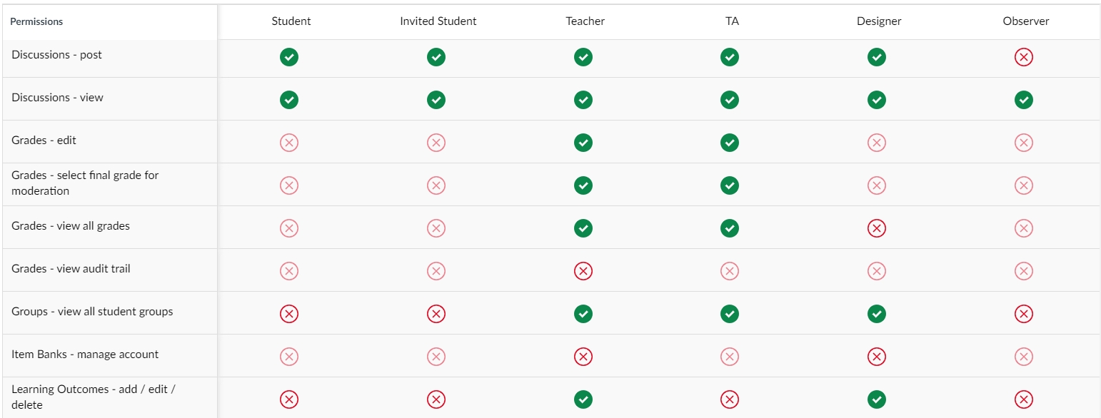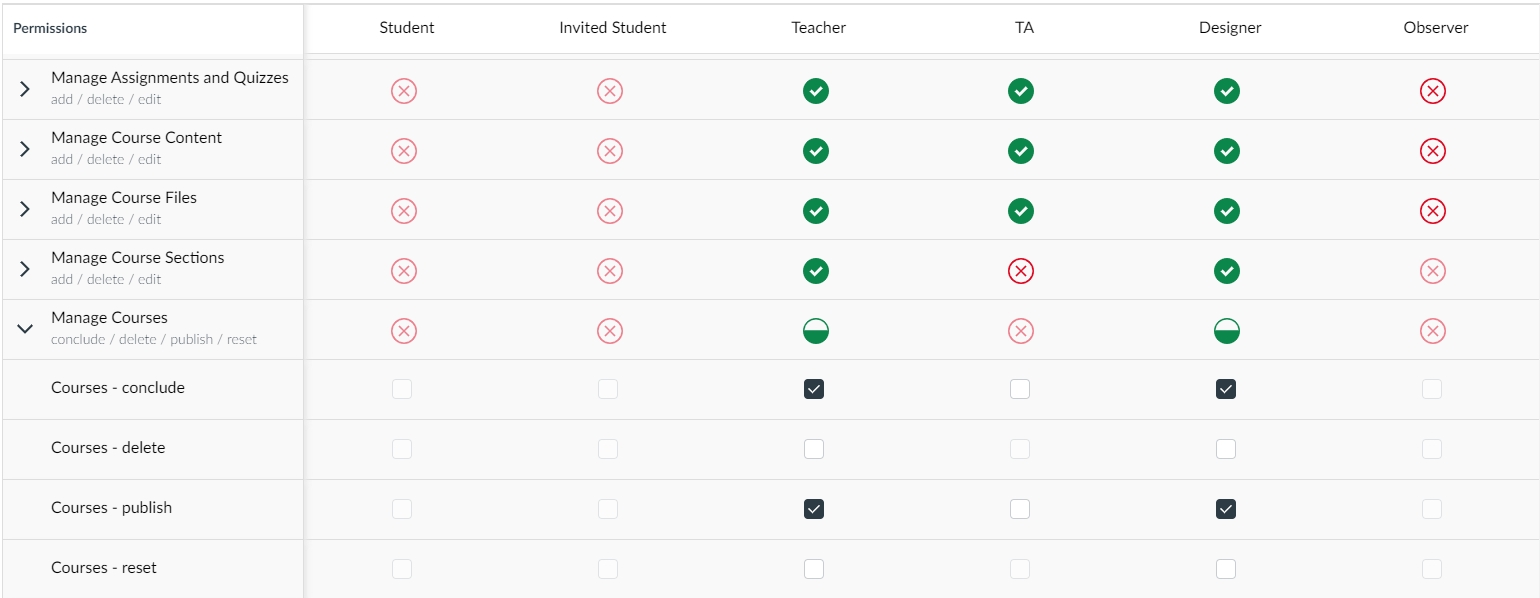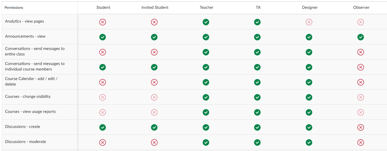 TA supports he creation of courses and various settings within the course. They have the same course management permissions as the instructor.