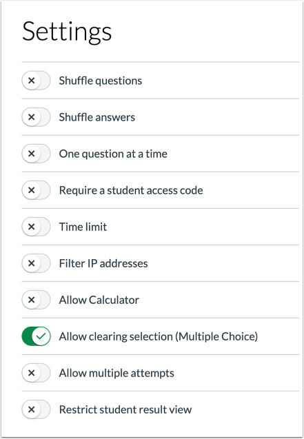 Allow students to delete their previously answered responses from the question and leave the answer blank.