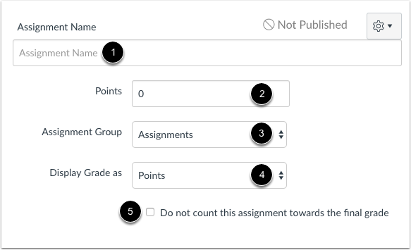 You will be able to view the sequence of the questions [1], the type of question [2], the score [3], the description [4], and the total score [5].
