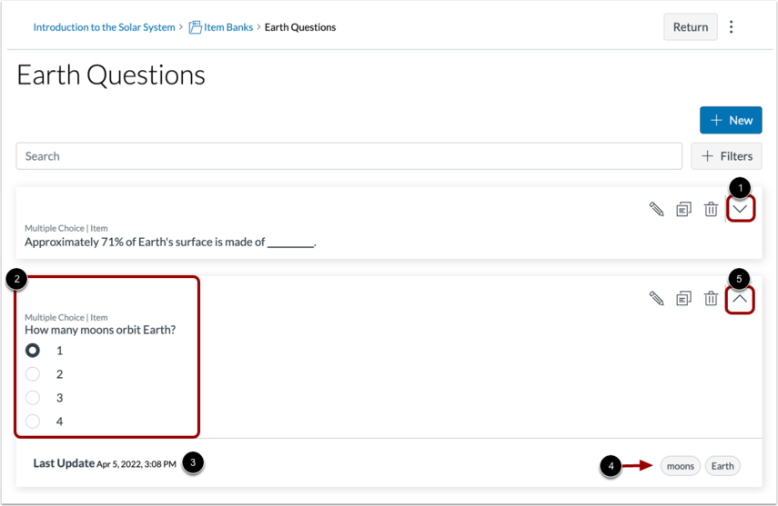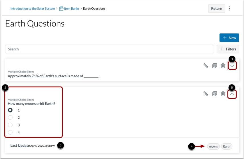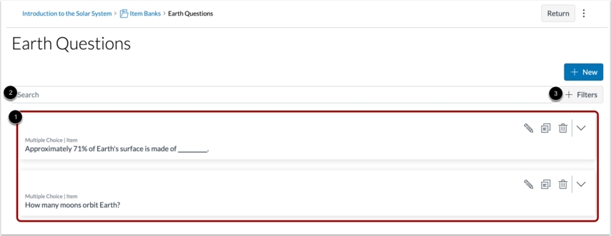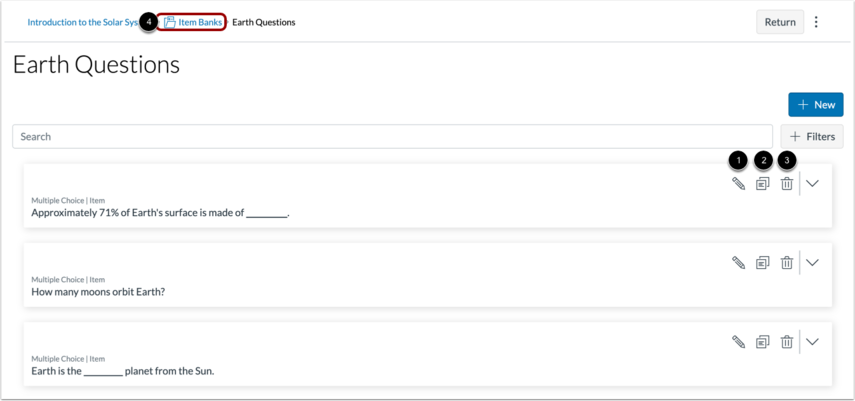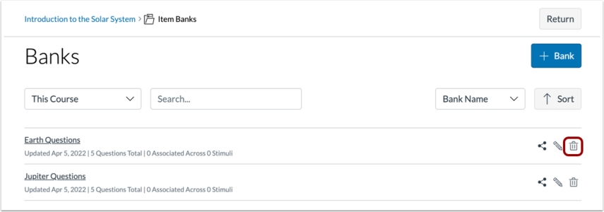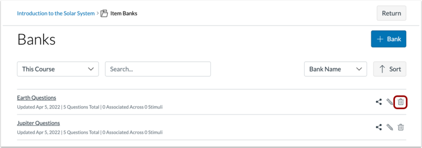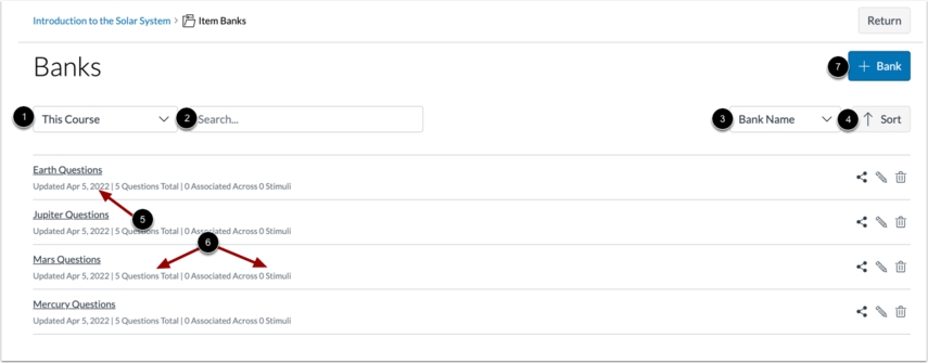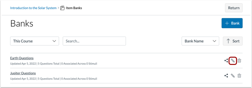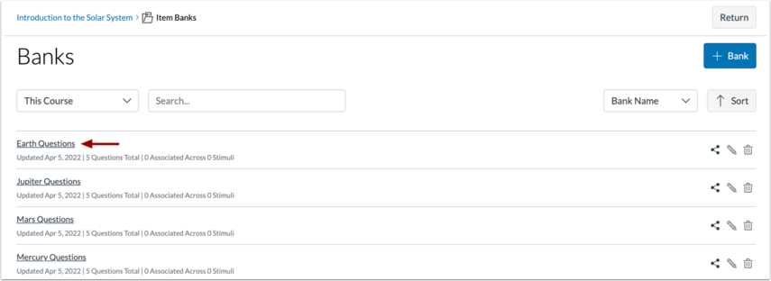 You can access the details inside the exam bank by clicking on the name of the respective Item Banks.