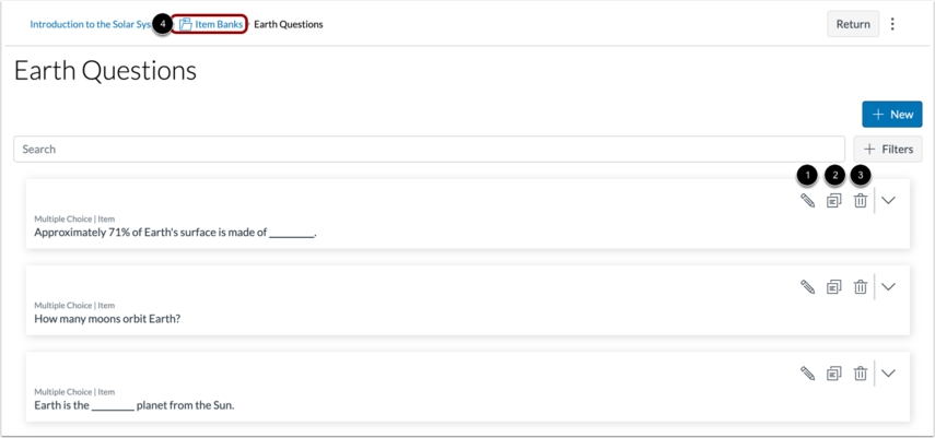Access the Item Banks section from the left-hand menu or the New Quizzes Build page.