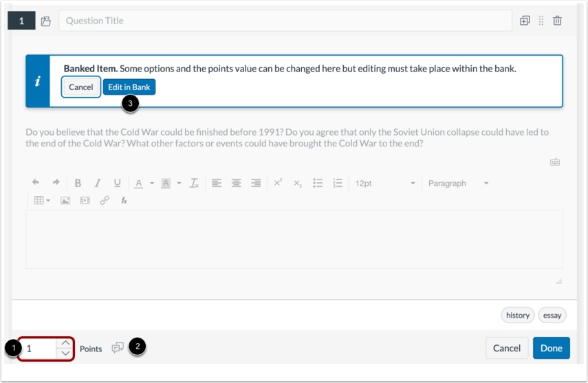 When editing a question in the question bank, a notification window will appear. Editing a question in the question bank will modify all the data and may affect the display and data of the question. The part that can be edited without affecting other parts is the score.