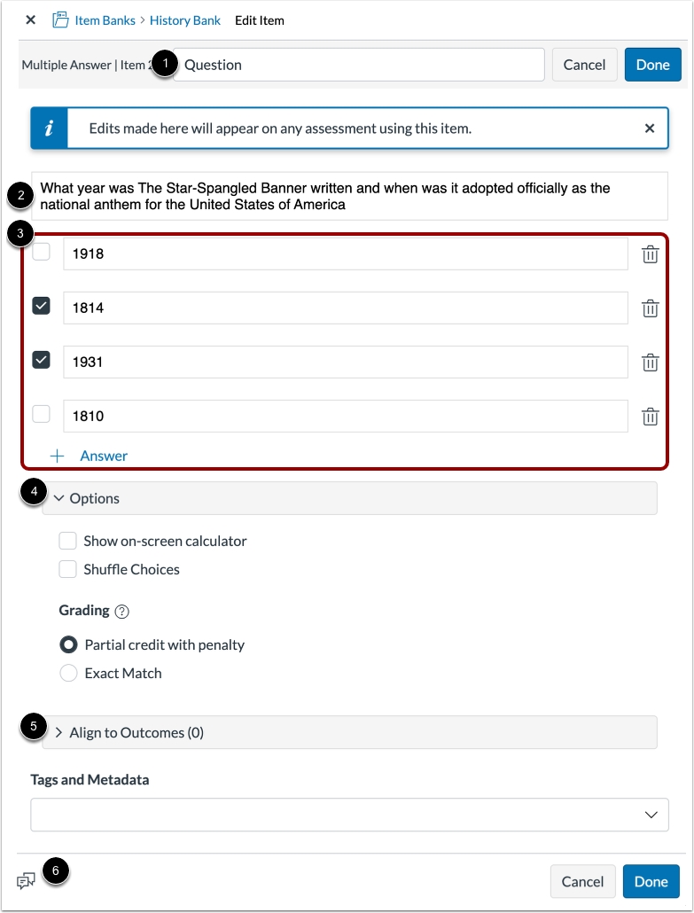[2] Share this Item Bank with current course