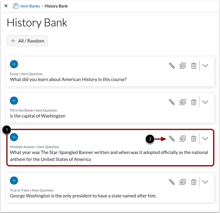 [1] Go to the question you want to add to the Item Bank.