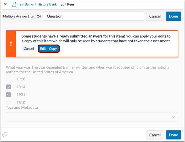 Editing Item Bank