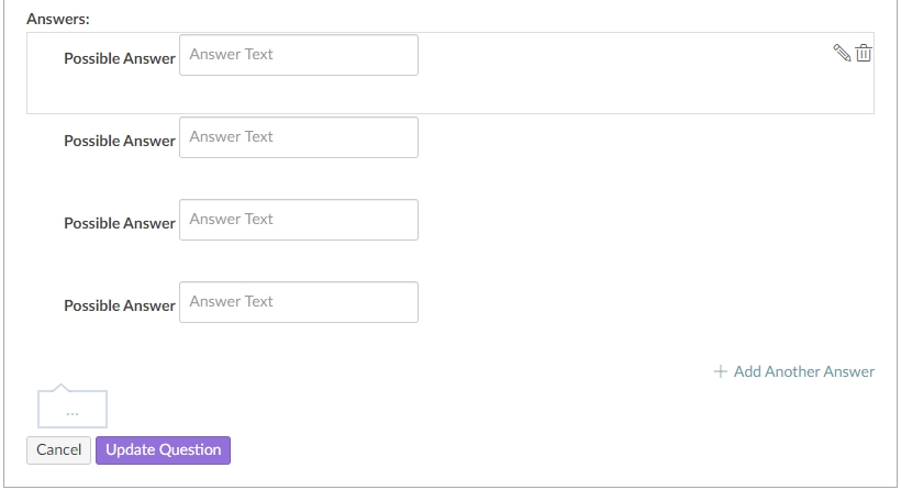 When selecting options from a dropdown menu, this section has a format similar to creating Multiple Choice and Fill In Multiple Blanks questions. The difference lies in the way the answer choices are created.