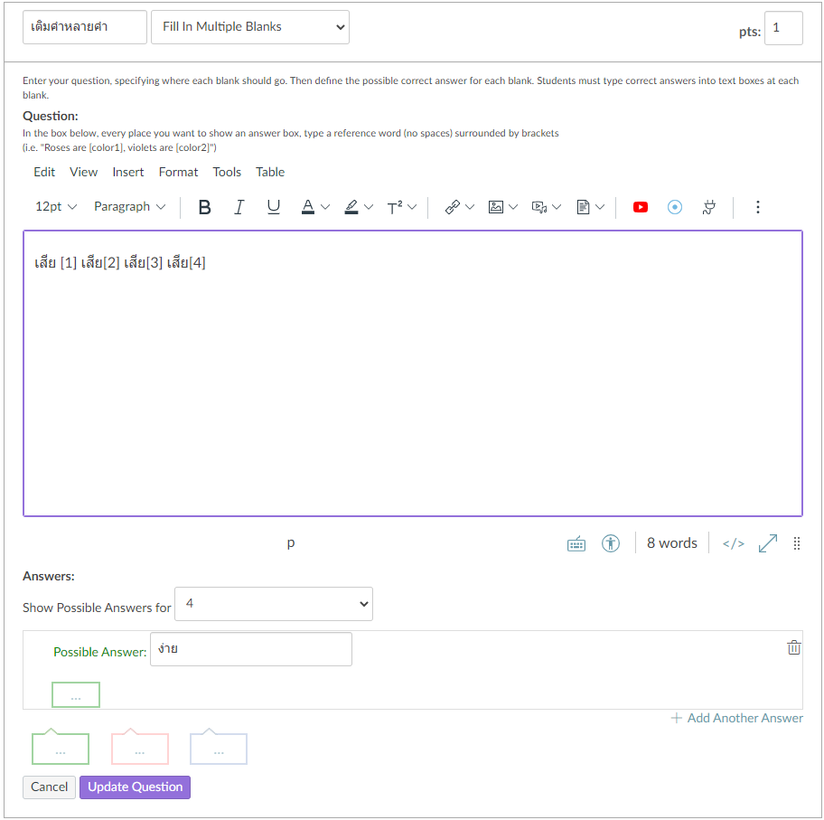 The Display Page of Fill In Multiple Blanks เรียบร้อยแล้ว (student's view)