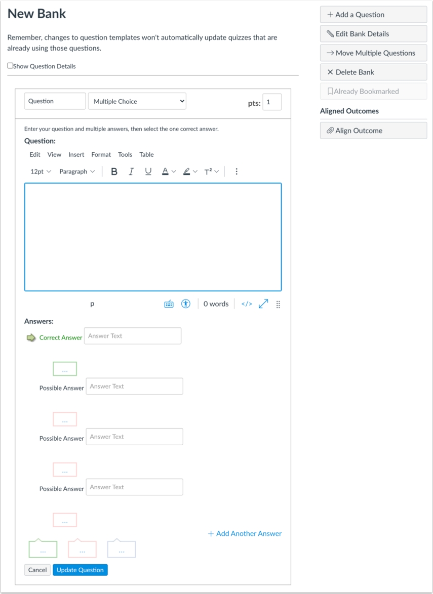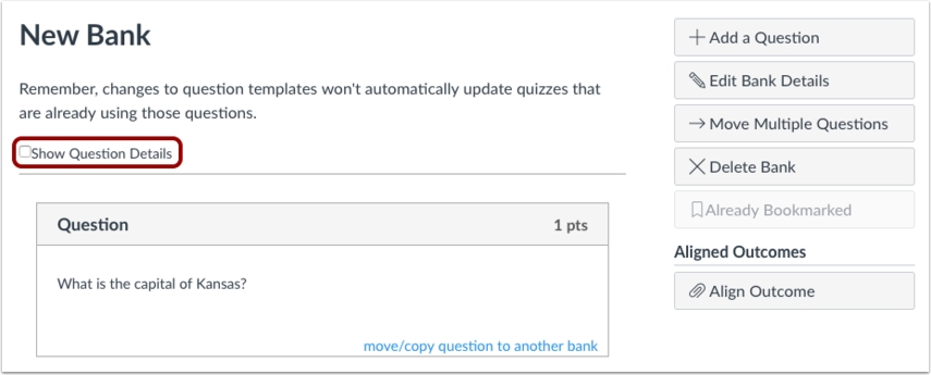 Question Banks are repositories of exam questions specifically designed for Classic Quizzes. Question banks can be shared between courses or accounts.