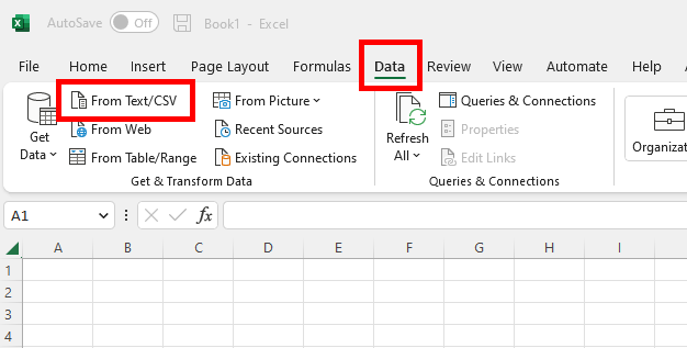 Open Excel, and go to the tab Data -> From Text.