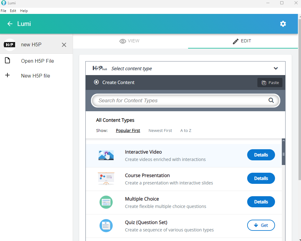 Create new H5P interactive video and choose desired content.