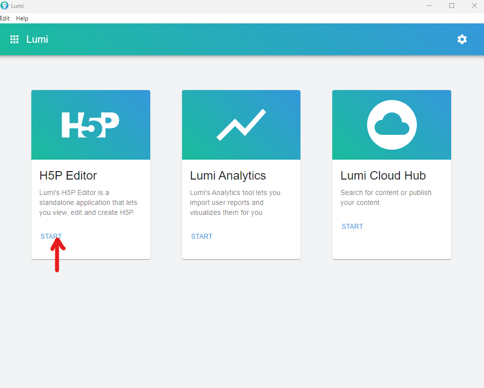 To create a new video, click START at H5P Editor.