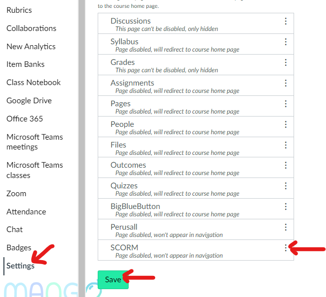 Goto Mango Canvas >> SCORM >> three-dot button >> Enable >> Save.