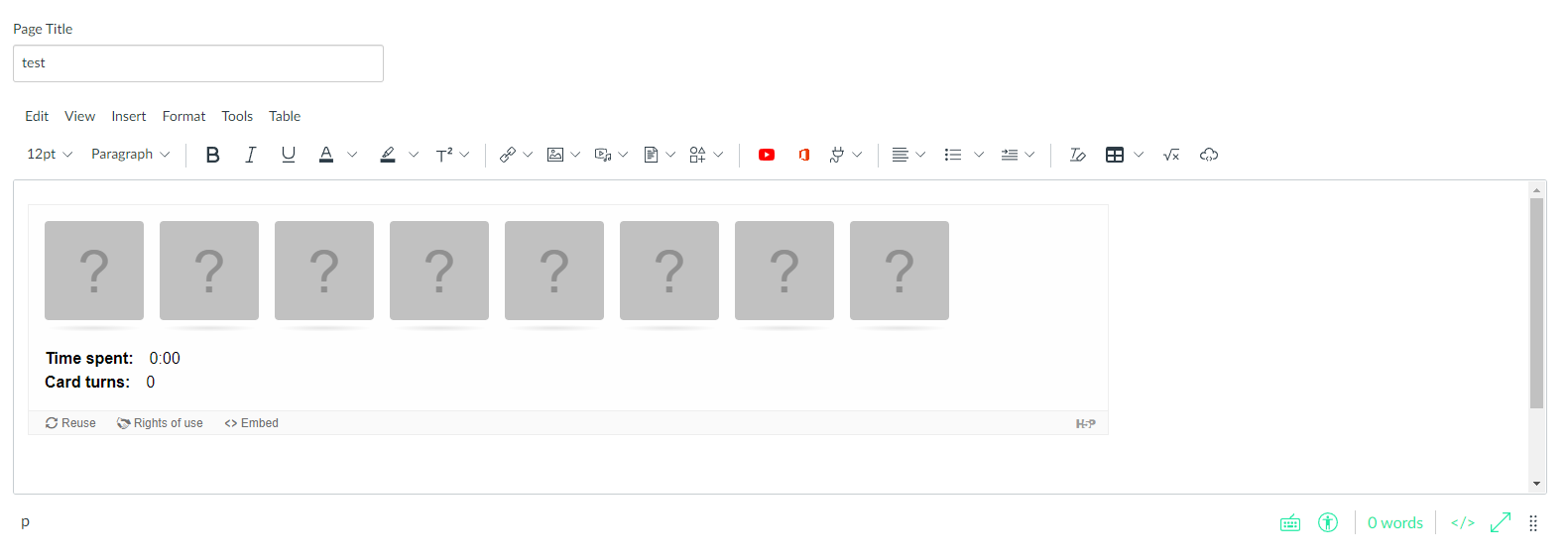 The H5P content from the embed code will appear in the Rich Text Editor, which can be previewed or added additional text.