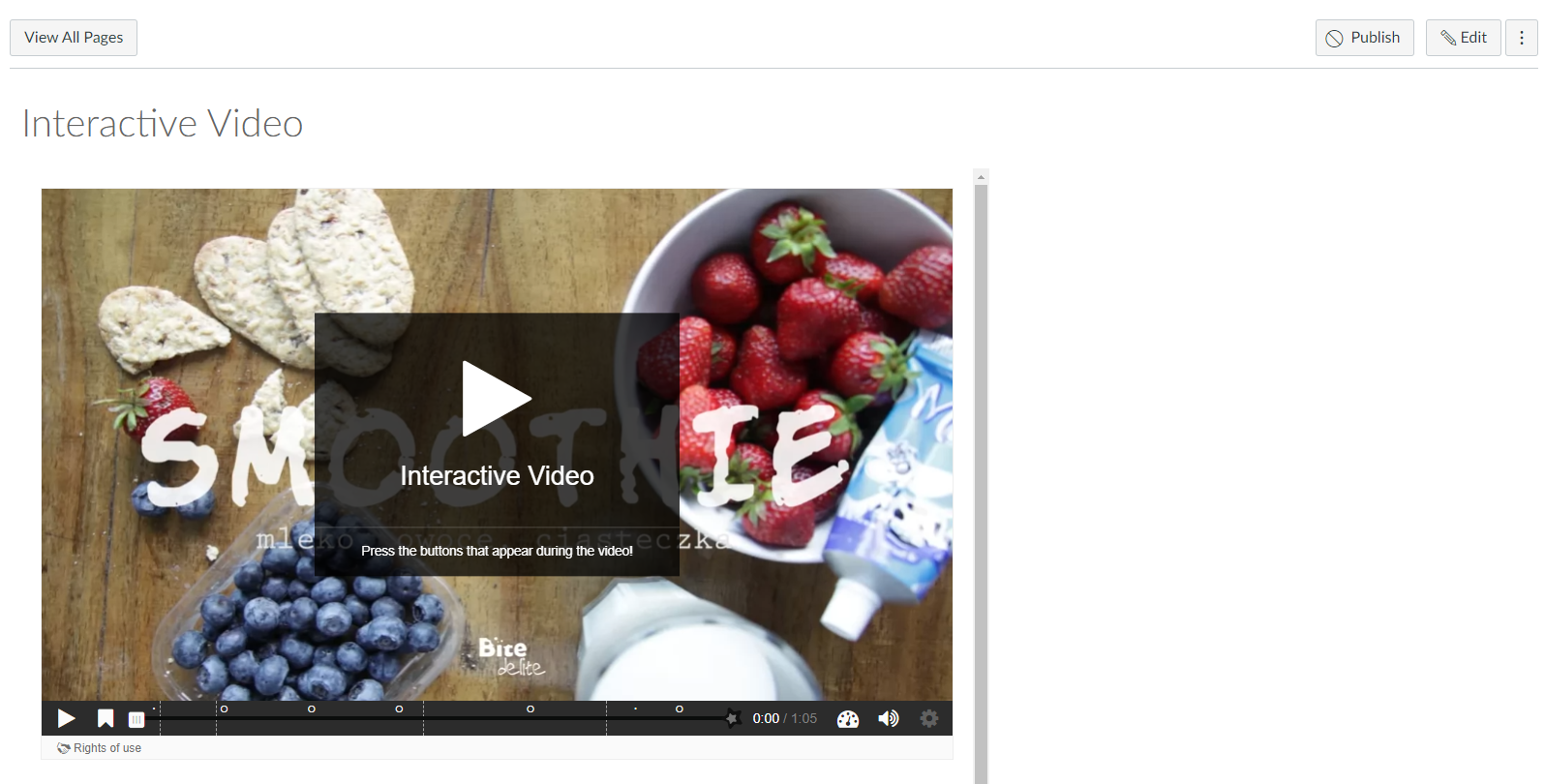 This will create a page containing an interactive video with which students can actively engage.