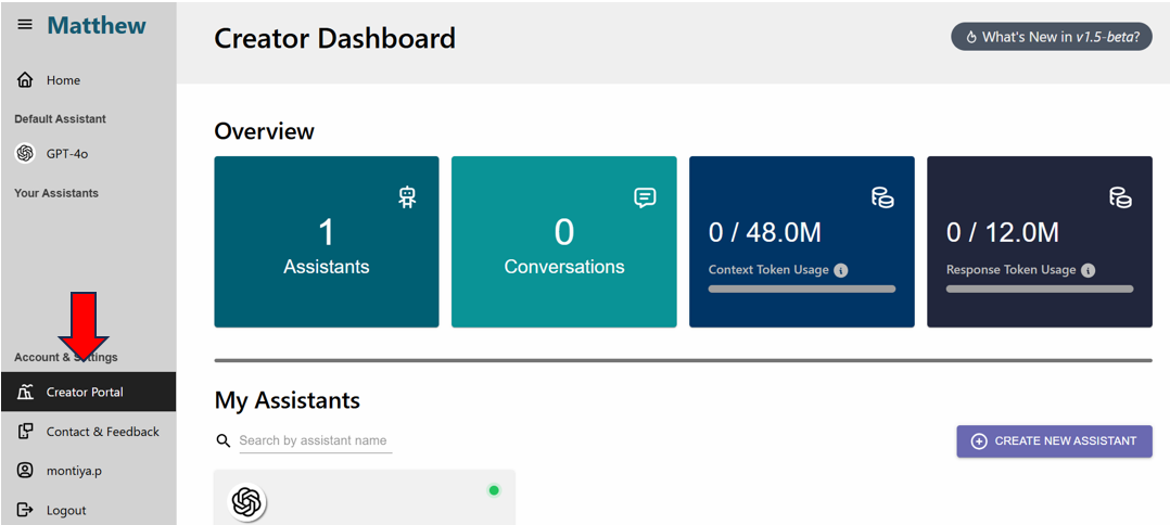 ## <mark style="color:red;">2. เลือก "CREATE NEW ASSISTANT" ใน "My Assistants"</mark>