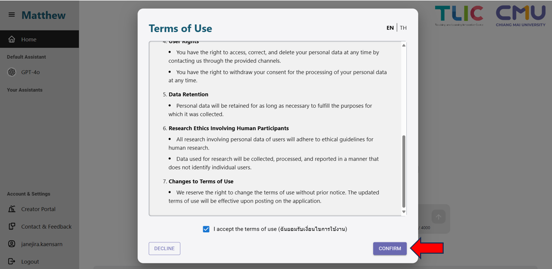 4.1 กดตกลงโดยกดที่กล่องเหลี่ยมหน้าข้อความ I accept the terms of use (ฉันยอมรับเงื่อนไขการใช้งาน)