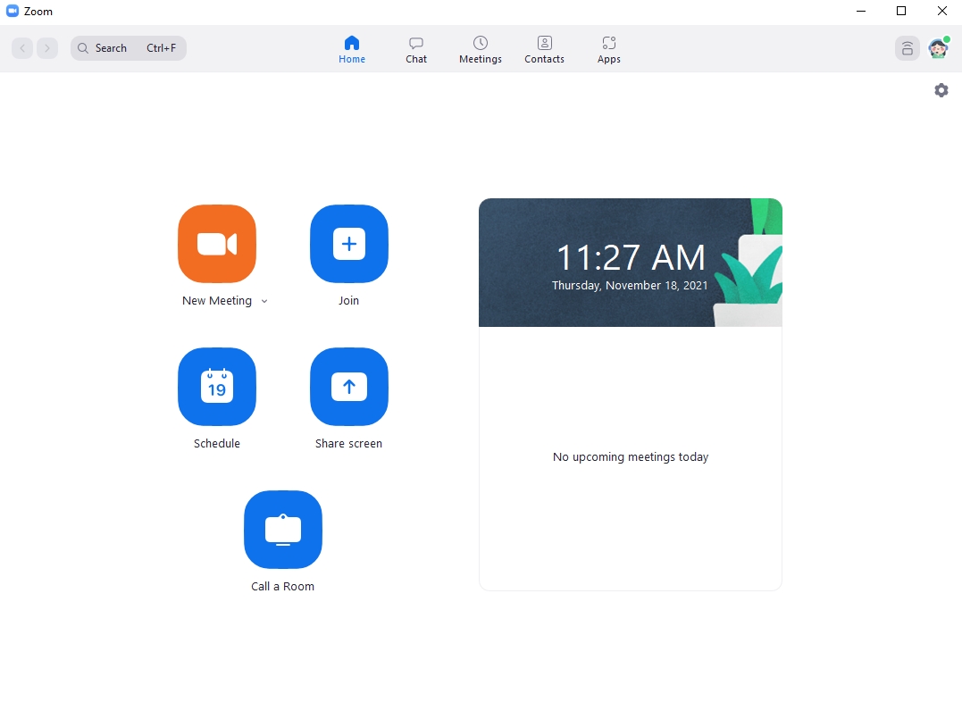Enter the Zoom program, then select New Meeting (orange button) to create a new meeting room and join immediately.