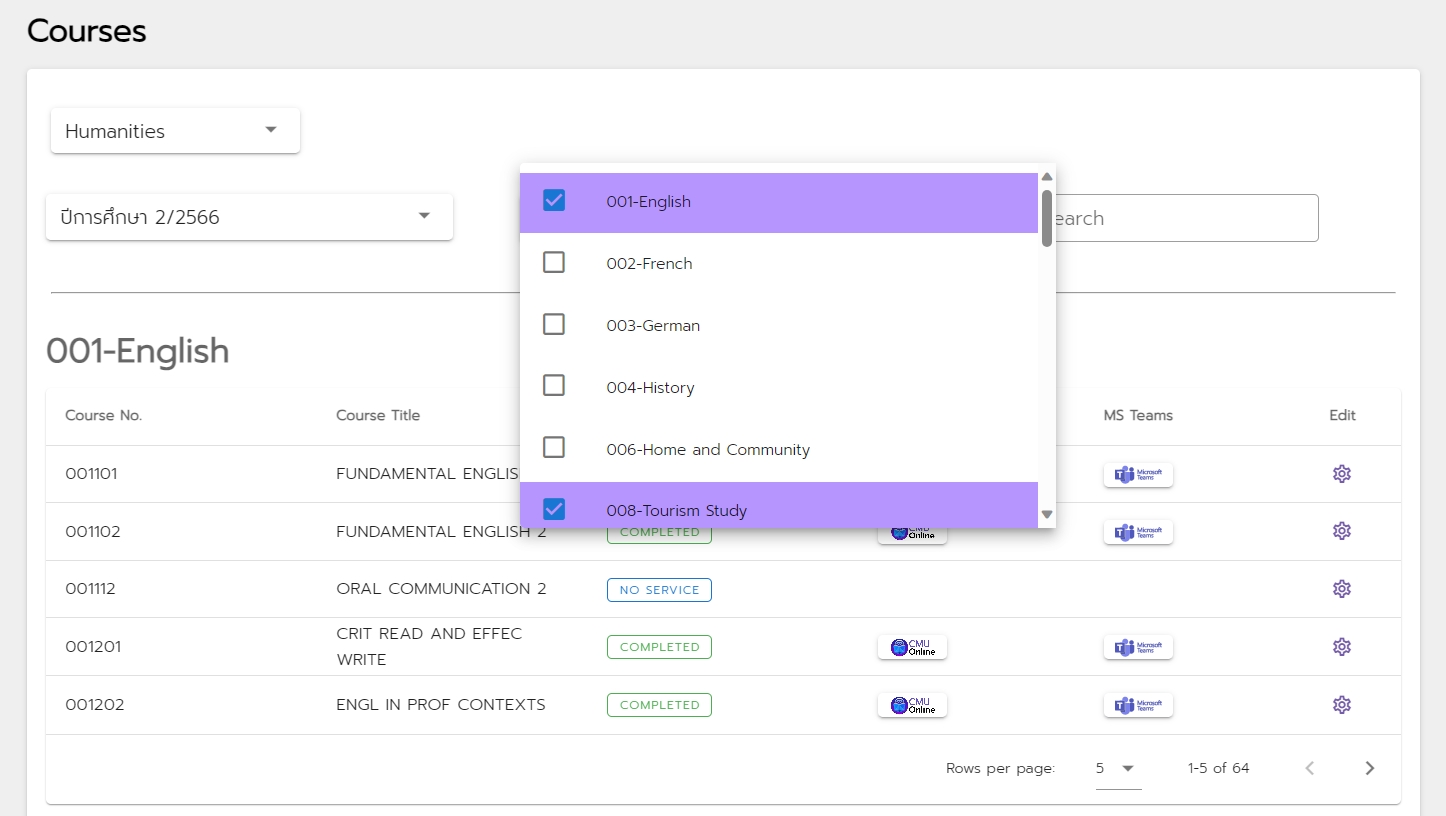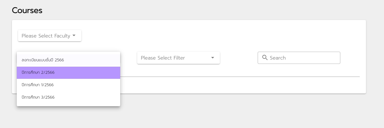 If filter is off, the system will display all subjects in the faculty. To use filter, click on checkbox of preferred subjects. The system displays 3-first digit of the subject code and its name like showing in the picture below.