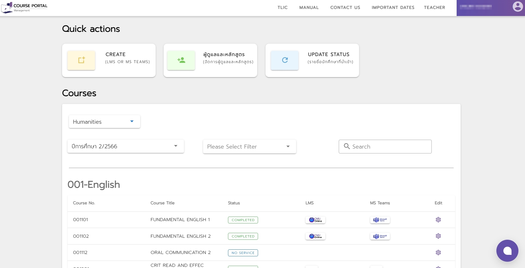 In the home page, select ADMIN menu, illustrating in the picture below, or using URL: https://portal.tlic.cmu.ac.th/admin-console