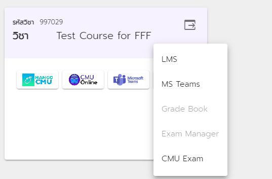 <figure><img src="https://files.gitbook.com/v0/b/gitbook-x-prod.appspot.com/o/spaces%2FZeihKhgOHcWozkqK5QzU%2Fuploads%2FmWe8AIBAUeMNXFPyk8TL%2Fimage.png?alt=media&#x26;token=37deb671-9fdb-456d-89c5-3b38387097ba" alt=""><figcaption><p>การ์ดกระบวนวิชาที่มีโลโก้ระบบต่างๆ</p></figcaption></figure>