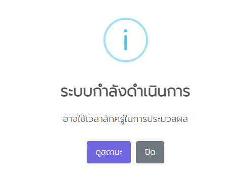 <figure><img src="https://282803452-files.gitbook.io/~/files/v0/b/gitbook-x-prod.appspot.com/o/spaces%2FIBiUJwj3XI5QMWN7F9jy%2Fuploads%2FSHomgf7W7RPRseSIOJjY%2Fimage.png?alt=media&#x26;token=a310749d-a82a-4ed1-88c9-d47951dd8b9a" alt=""><figcaption><p>หน้าต่างแจ้งเตือนการดำเนินการ</p></figcaption></figure>