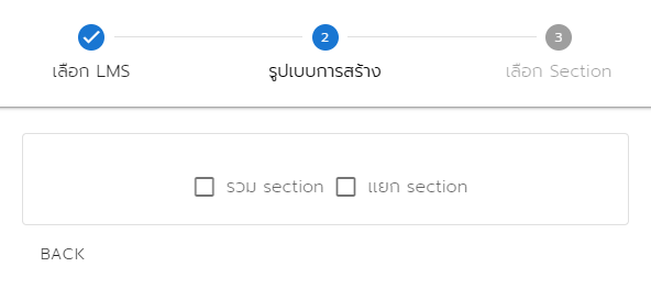 **รวม section** - ระบบจะสร้างคอร์สออกมาเพียง 1 คอร์ส โดยมีรายชื่อน.ศ.ทุก section ทั้งหมดที่เลือก
