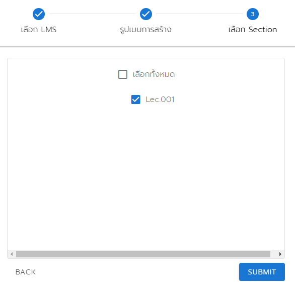 <figure><img src="https://282803452-files.gitbook.io/~/files/v0/b/gitbook-x-prod.appspot.com/o/spaces%2FIBiUJwj3XI5QMWN7F9jy%2Fuploads%2Fw5RIp96kGH1byIlQ1SOk%2Fimage.png?alt=media&#x26;token=861d4c3f-4a22-4df1-bca0-373d985f17a3" alt=""><figcaption><p>หน้าจอเลือก section</p></figcaption></figure>