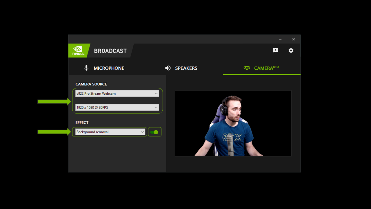 เลือกอุปกรณ์ NVIDIA Broadcast
